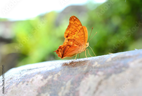 © lukakikina, Obraz premium Orange colour butterfly on ground stone