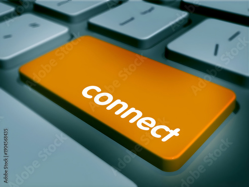 Fototapeta premium Orange Connect Button on Computer Keyboard for Networking Social Media and Global Communication Concept