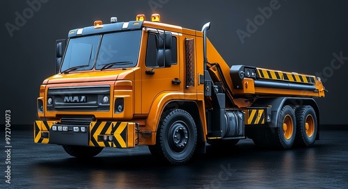 © Gayan, Fototapeta premium Orange Construction Truck Model, Dump Truck with Safety Reflectors