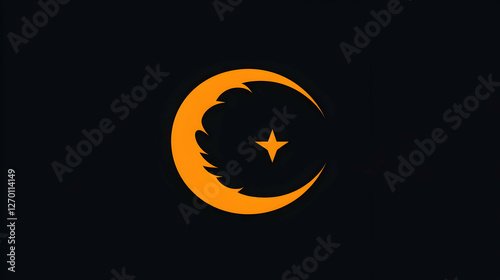 © Nabila Ayu, Fototapeta premium Orange Crescent Moon Symbol on Dark Background