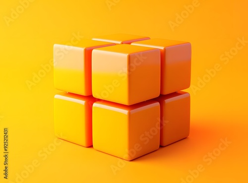 © duyina1990, Obraz premium Orange Cubes Abstract Minimalist 3D Rendering Background
