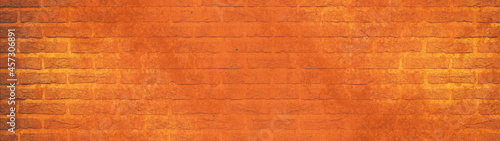 Obraz premium Orange damaged rustic brick wall brickwork stonework masonry texture background banner panorama.