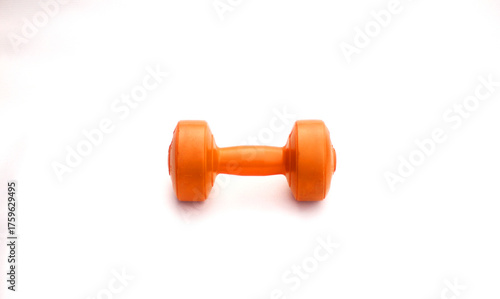 Fototapeta premium Orange dumbbells on a white background
