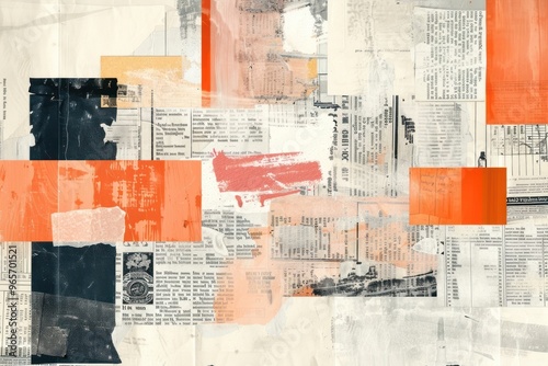 Fototapeta premium Orange ephemera frame collage text advertisement.