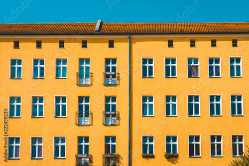 © Novanture, Fototapeta premium orange facade with small blue copy space on the top