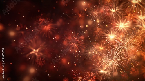 © stock.finder, Fototapeta premium Orange fireworks in the night sky. Celebration and festive concept.