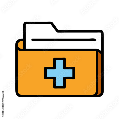 Obraz premium Orange First Aid Kit Icon with Blue Cross