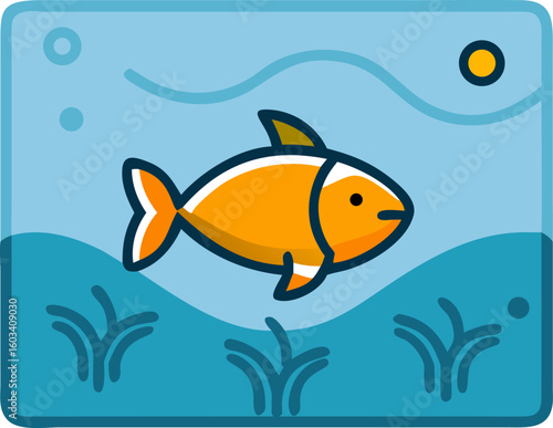 © Earthen Stock, Naklejka premium Orange fish swimming underwater, aquatic animal icon