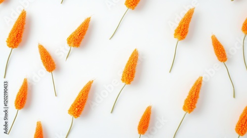 © -Quantum Pixels-, Fototapeta premium Orange flower buds arranged on a white background with ample Copy Space for text placement.