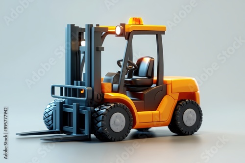 © GenBy, Fototapeta premium Orange forklift on a gray background, showcasing modern design and functionality.