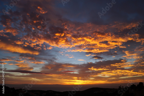 Obraz premium orange golden clouds and magical sunrise over the sea