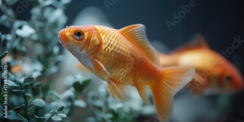 Fototapeta premium Orange goldfish swimming gracefully in aquarium with lush greenery