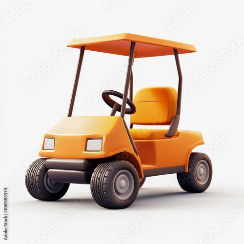 © Mosaic Mind, Fototapeta premium Orange Golf Cart 3D Render: A Fun and Leisurely Ride on the Green