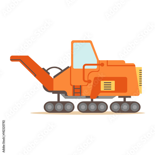 Naklejka premium Orange Gravel Spreading Graver Machine , Part Of Roadworks And Construction Site Series Of Vector Illustrations