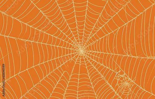© Gelpi, Obraz premium Orange halloween background with spiders web. Generative AI