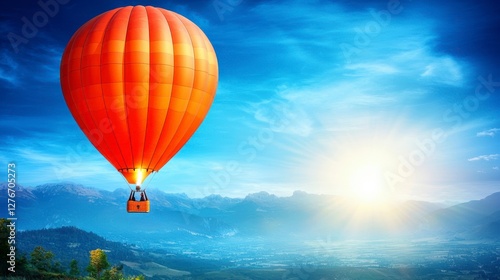 Fototapeta premium Orange Hot Air Balloon Ascending Over Misty Valley at Sunrise