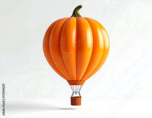 © Rois, Obraz premium Orange Hot Air Balloon Resembling a Pumpkin on White Background