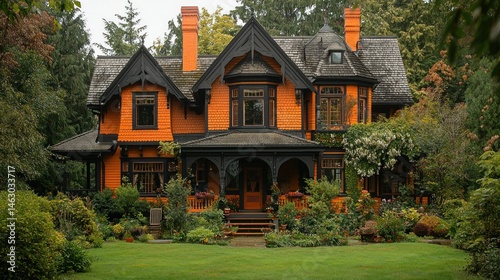 © sweattea, Fototapeta premium Orange house in garden