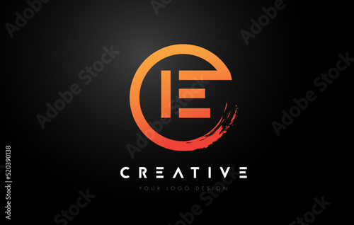 Obraz premium Orange IE Circular Letter Logo with Circle Brush Design and Black Background.