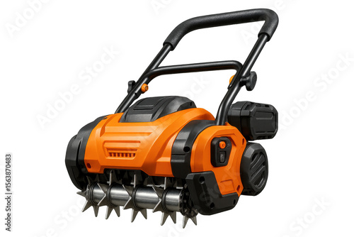 © whitestorm, Fototapeta premium Orange lawn aerator machine isolated on transparent background, modern design.