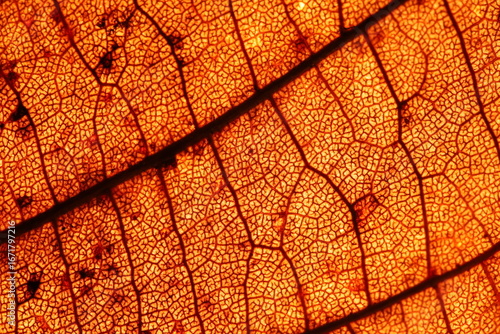 Obraz premium Orange leaf texture, extreme close up, flat material, dried leaf