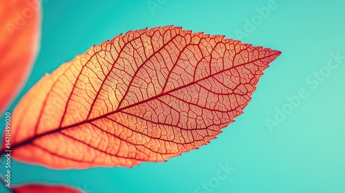 © rahmi, Obraz premium Orange Leaf Veins on Blue Background