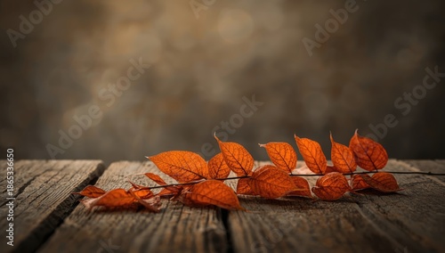 © NeuralNiche, Obraz premium Orange leaves on the ground, natural fall pattern used for background or design, seasonal change