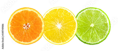 Obraz premium Orange lemon lime slice isolated on transparent png