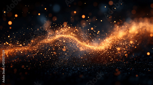 Naklejka premium Orange lens flare on a black background in a minimalistic style with a bright and modern tone creating a blurred effect and empty blank space symbolizing energy transformation and chaos