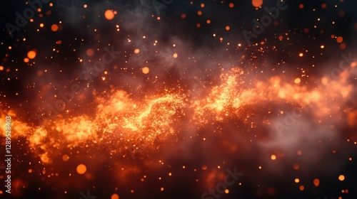 © angelmaxmixam, Fototapeta premium Orange light particles. Sparkle dust motion. Abstract fire background. Glowing bokeh texture. Energy wave flow. Magic dust effect. Light particles shine.