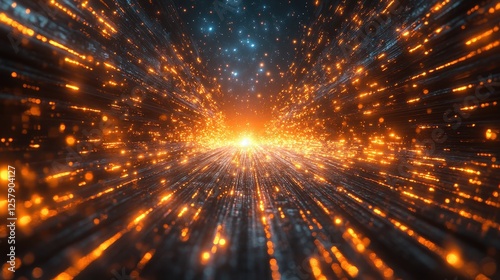 © Gendowor, Fototapeta premium Orange light streaks tunnel, cosmic background, digital art, website header