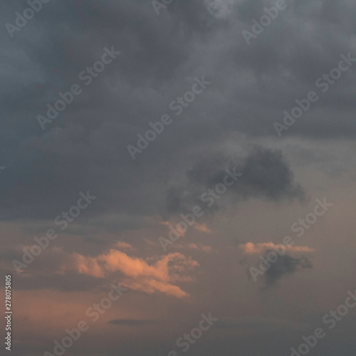 Obraz premium Orange lights and dark thunderstorm clouds in the sky.