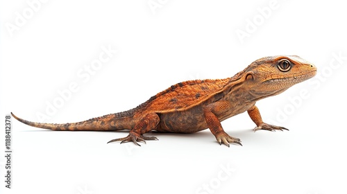 © Rapit, Fototapeta premium Orange lizard profile view, white background, reptile, wildlife photography, perfect for pet reptile websites.
