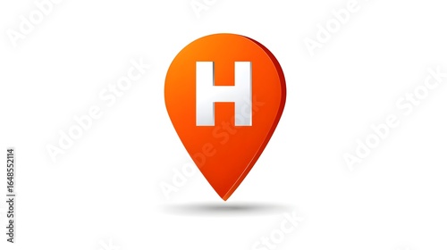 © Vangly, Obraz premium Orange location pin icon with letter H
