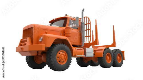 © Matej, Fototapeta premium Orange logging truck PNG isolated on transparent background, heavy machinery for forestry and timber transport, powerful vehicle