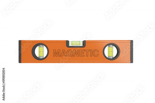© tama, Obraz premium Orange magnetic level tool with yellow vials on black isolated on a transparent background