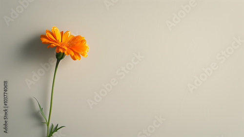 © Harry, Naklejka premium Orange Marigold on Light Grey Background with Copy Space