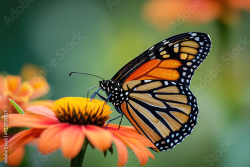 © Alina, Fototapeta premium Orange monarch butterfly on the flower on blurred background