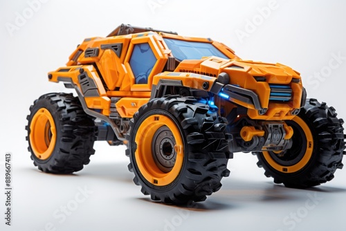 © munawaroh, Obraz premium Orange Monster Truck Toy with Big Tires.
