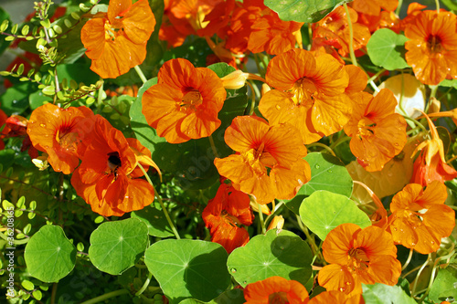Obraz premium Orange nastirtium blooming in the garden