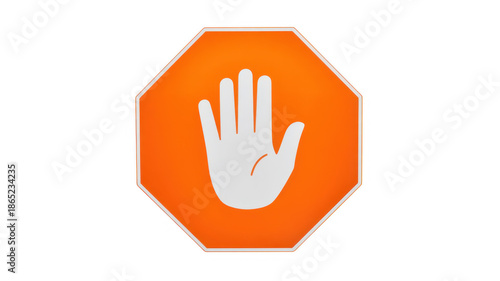 © Farzana, Obraz premium Orange octagonal stop sign with white hand traffic sign isolated on a transparent background