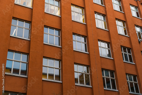 © Novanture, Fototapeta premium orange office or finance building facade in low angle view