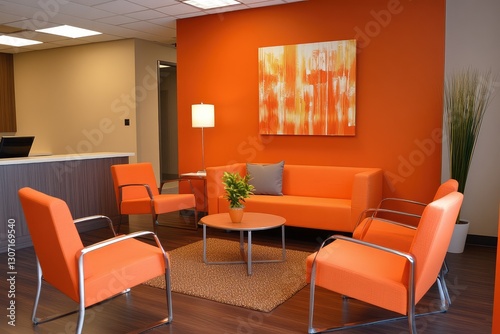 © Tunsale, Fototapeta premium Orange office waiting area. AI generated illustration.