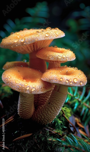 Obraz premium Orange pine mushroom Lactarius deliciosus with water drops