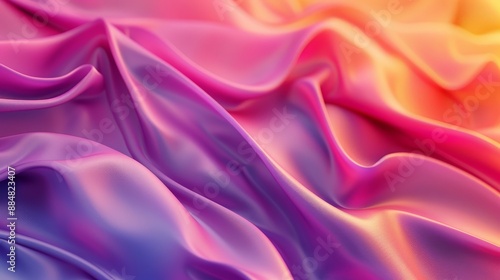 © Dhoku Studio, Obraz premium Orange, pink and purple silk fabric with gentle waves and soft folds. Gradient solid color background, beautiful composition.