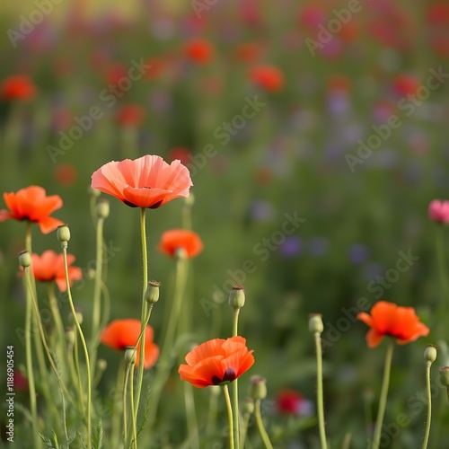 © beda, Fototapeta premium Orange poppies blooming in a field.