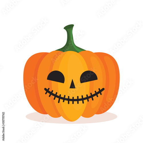 Fototapeta premium Orange pumpkin lantern with a scary face for Halloween. Festive decoration. Cartoon isolated vector illustration on white background