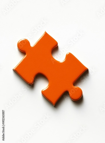 © Nasra, Obraz premium Orange puzzle piece on white background, solution concept (1)