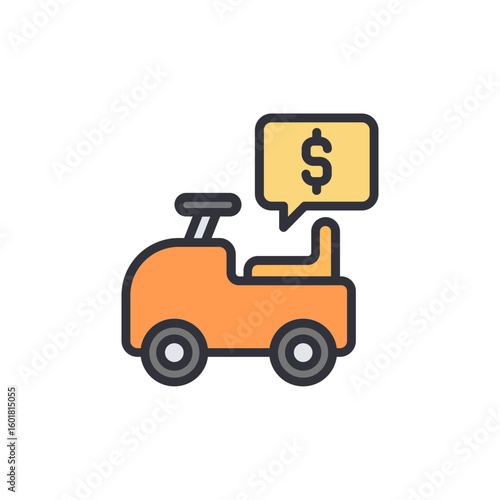 Fototapeta premium Orange Ride On Toy With Dollar Symbol In Chat Bubble Design