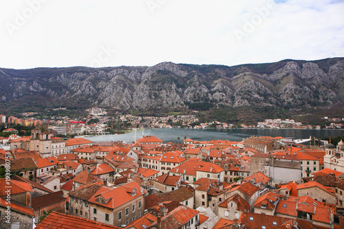 Fototapeta premium Orange roofs of a medieval city. Top view.
